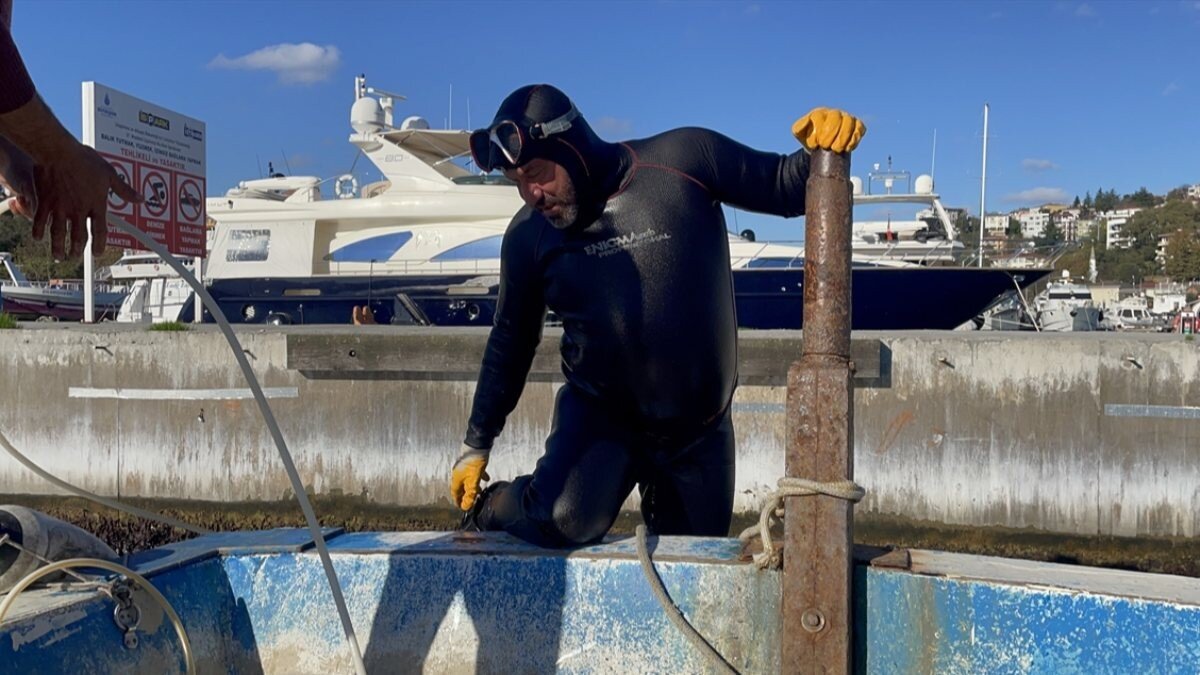 İstanbul Boğazı'nda 27 yıldır deniz salyangozu avlayan dalgıç Yücel Akpınar, deniz suyunun soğumasıyla sezonun son avlarını gerçekleştiriyor.