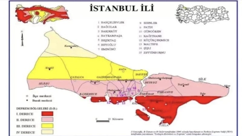 Avcılar, Küçükçekmece, Bakırköy, Beylikdüzü, Zeytinburnu, Fatih, Bahçelievler ve Güngören, birinci derece riskli bölgeler arasında yer alıyor.