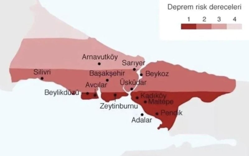 Bu nedenle İstanbul’daki ilçelerin büyük bir kısmı 1. ve 2. derece deprem riski taşıyor. Risk, fay hatlarına yakınlık ve zemin yapısına göre değişkenlik gösteriyor.
