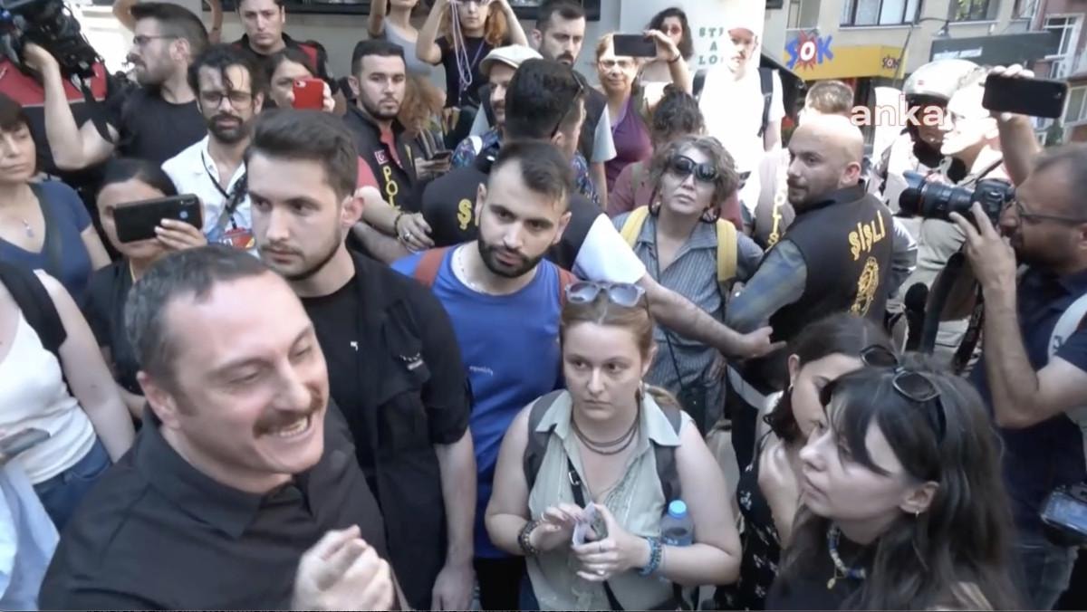 Sloganlar eşliğinde yürüyüş yapmak da direnen grup ile İstanbul Emniyet Müdür Yardımcısı Hanifi Zengin arasında gerginlik yaşandı.
