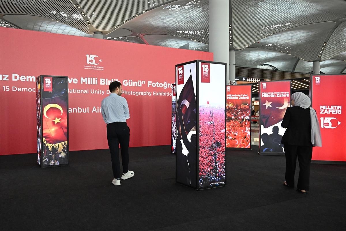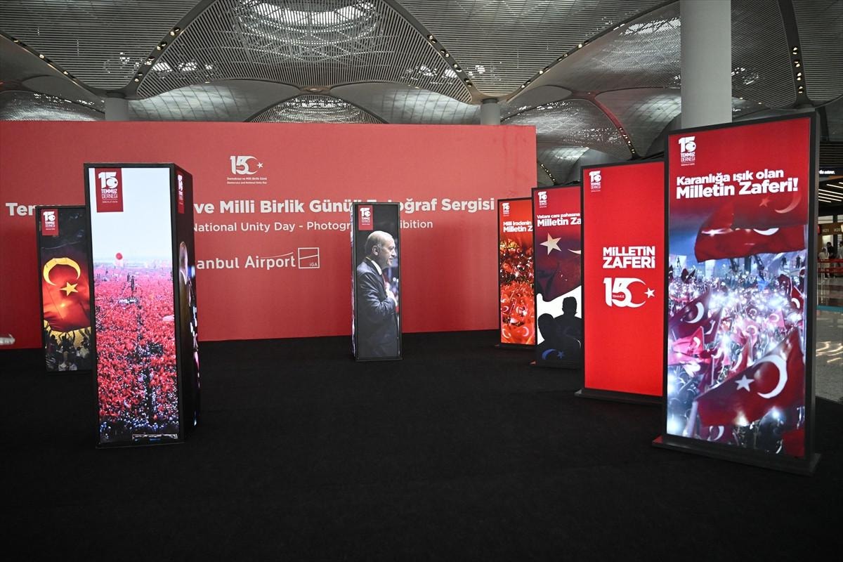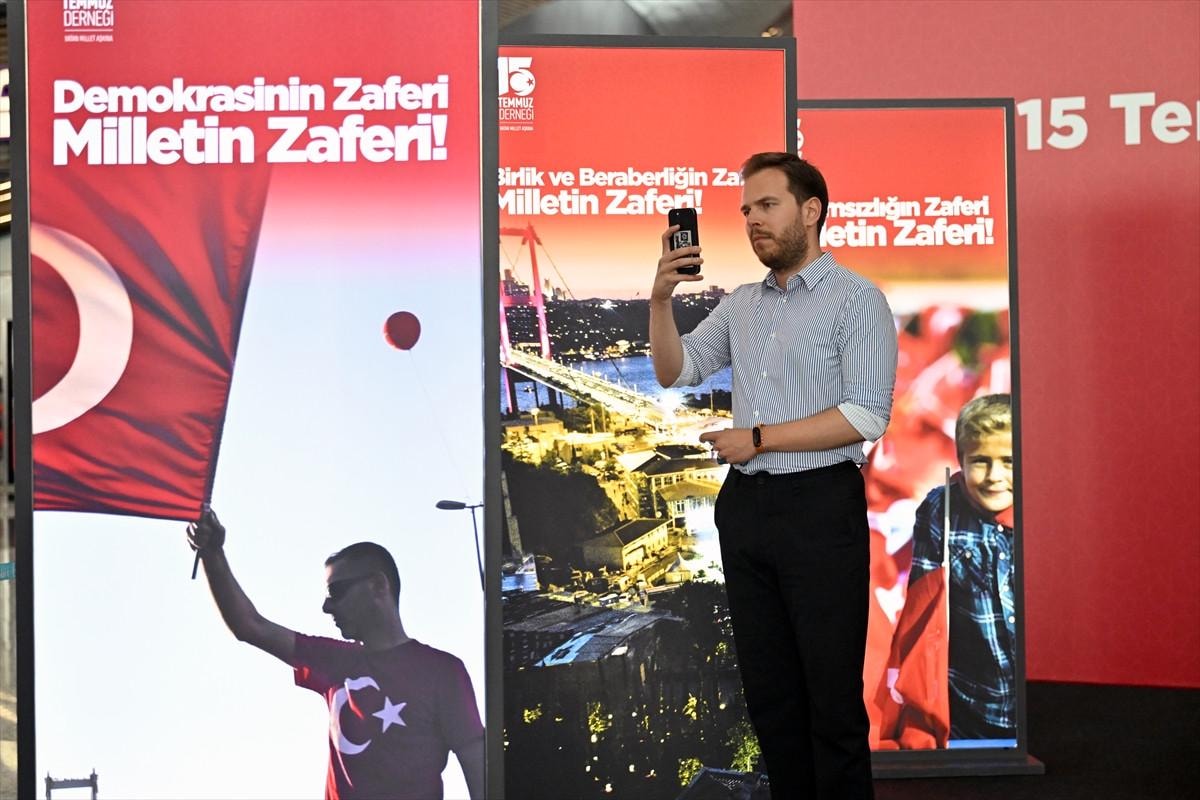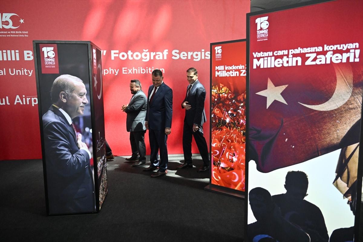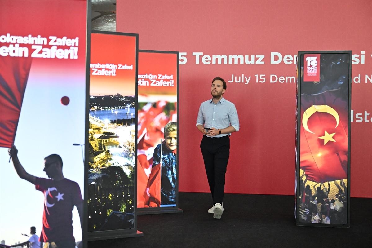 Türk milletinin demokrasi zaferini simgeleyen 15 Temmuz vesilesiyle dış hatlar terminali giden yolcu katında bulunan İstanbul yazısı önünde, demokrasi zaferine dair fotoğrafların yer aldığı bir sergi hazırlandı. 15 Temmuz Demokrasi ve Milli Birlik Günü dolayısıyla hazırlanan sergi düzenlenen törenle ziyarete açıldı. Törene, İstanbul Havalimanı Mülki İdare Amiri Vali Mehmet İlker Haktankaçmaz, İGA İstanbul Havalimanı CEO'su Selahattin Bilgen, İstanbul Havalimanı Jandarma Tabur Komutanı Binbaşı Ferhat Dağıstan, İstanbul Havalimanı Emniyet Şube Müdürü Mustafa Parasız, Devlet Hava Meydanları İşletmesi İstanbul Havalimanı Başmüdürü Abdullah Enis Eker, 15 Temmuz Derneği Başkanı İsmail Hakkı Turunç ile beraberindekiler katıldı. Açılış töreni sonrası katılımcılar, sergi alanını gezerek fotoğraf çektirdi.