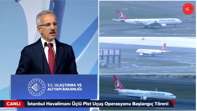 Ulaştırma ve Altyapı Bakanı Abdulkadir Uraloğlu, İstanbul Havalimanı'nda eş zamanlı üçlü bağımsız pist operasyonlarının başlatıldığını duyurdu. Havalimanında gerçekleşen törenin ardından üç uçak aynı anda pistten kalkış gerçekleştirdi.