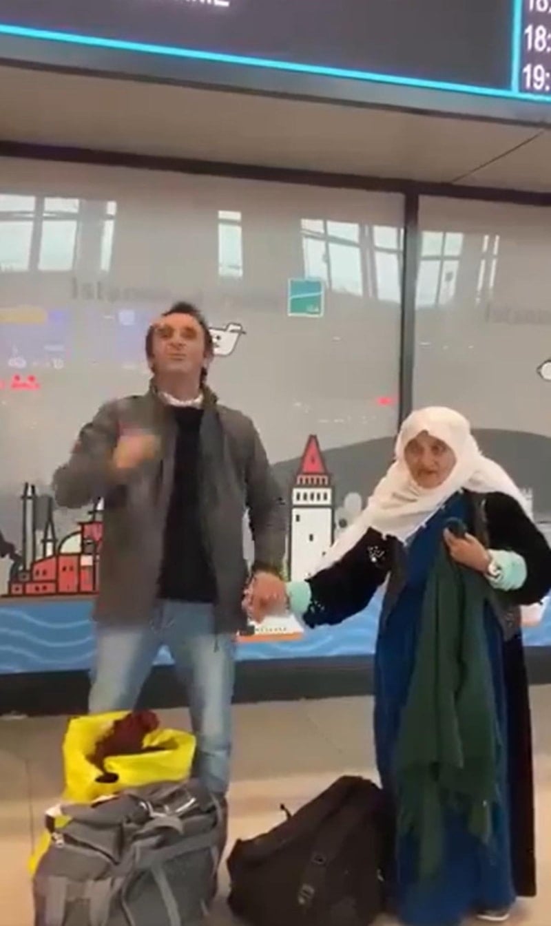 İstanbul Havalimanı'nda yaşanan bir olayda, şahıs yanındaki yaşlı annesiyle birlikte bir video kaydetti.
