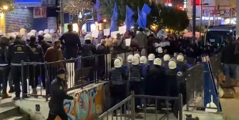 Bölgede güvenlik önlemi alan polis ekipleri, eylemin yasa dışı olduğunu belirterek grubun dağılmasını istedi. Eylemi sürdüren gruba müdahale eden polis, bazı göstericileri gözaltına aldı.