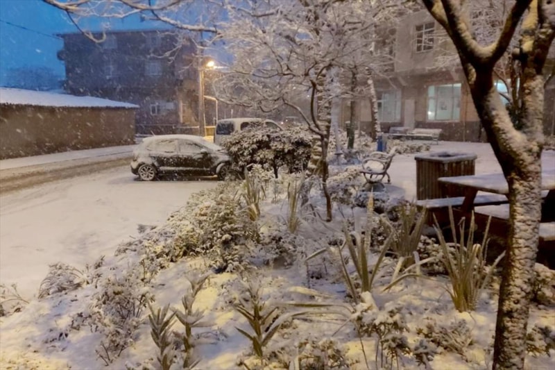 Silivri ilçesi Kadıköy Mahallesi'nde, akşam saatlerinde başlayan kar yağışı ile sokaklar ve araçların üzeri beyaz örtüyle kaplandı.