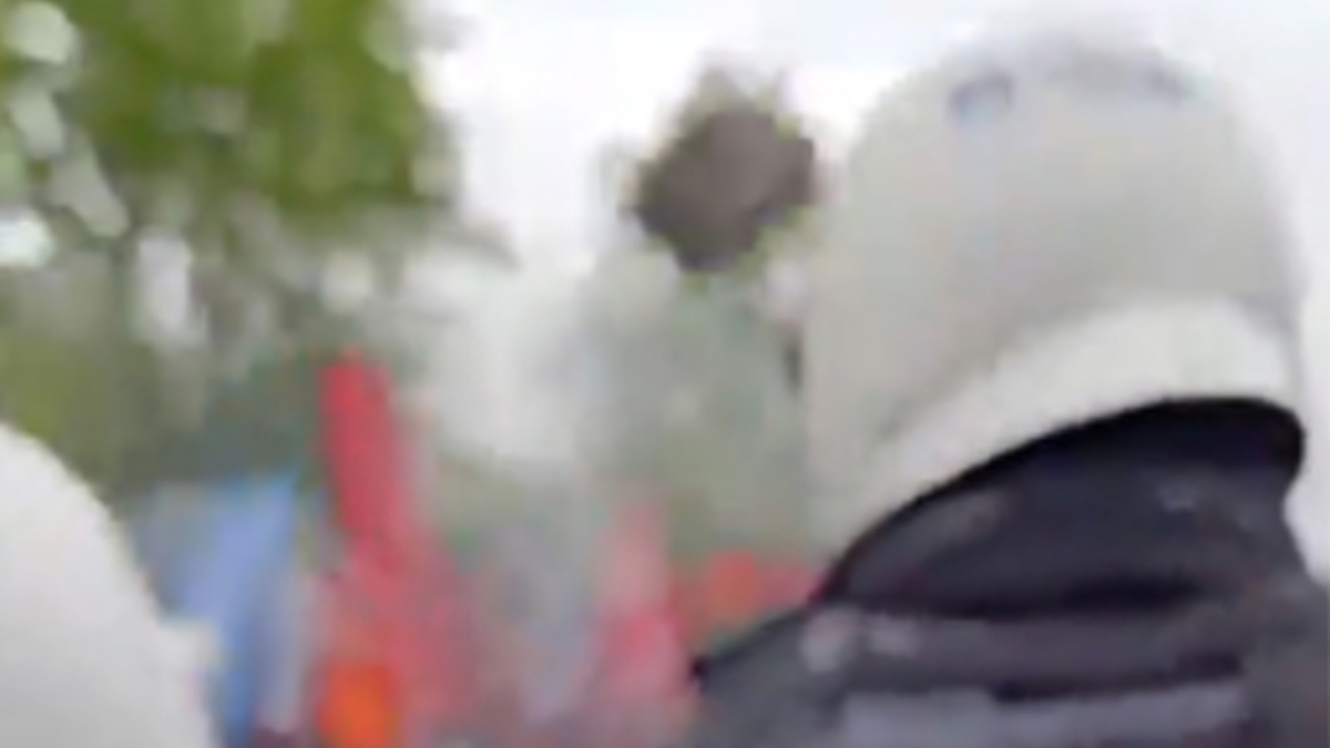 Kaldırım taşı isabet eden polis, kafasındaki kask sayesinde ölümden döndü.