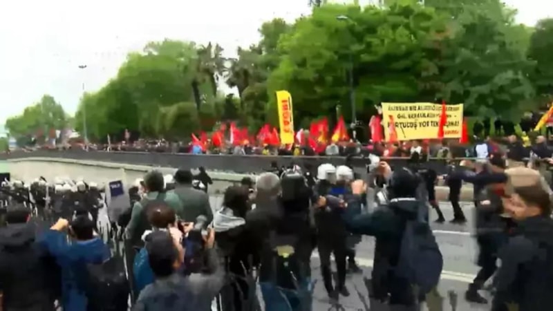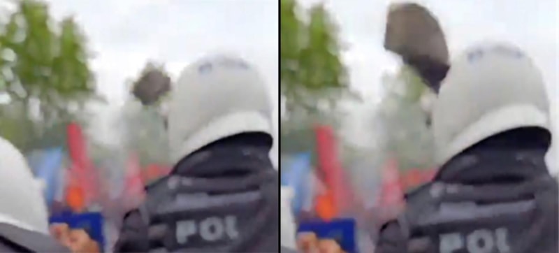 İstanbul'da 1 Mayıs'ta yasak olmasına rağmen Saraçhane'den Taksim Meydanı'na yürümek isteyen grupların attığı taşlarla 28 polis yaralandı. Ortaya çıkan bir görüntüde başına kaldırım taşı isabet eden bir polisin, taktığı kask sayesinde ölümden kurtulduğu görüldü.