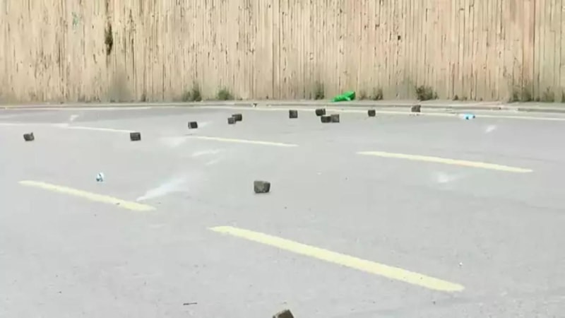 Polis ekipleriyle grup üyeleri arasında arbede yaşanırken sökülen kaldırım taşları polislere attı.