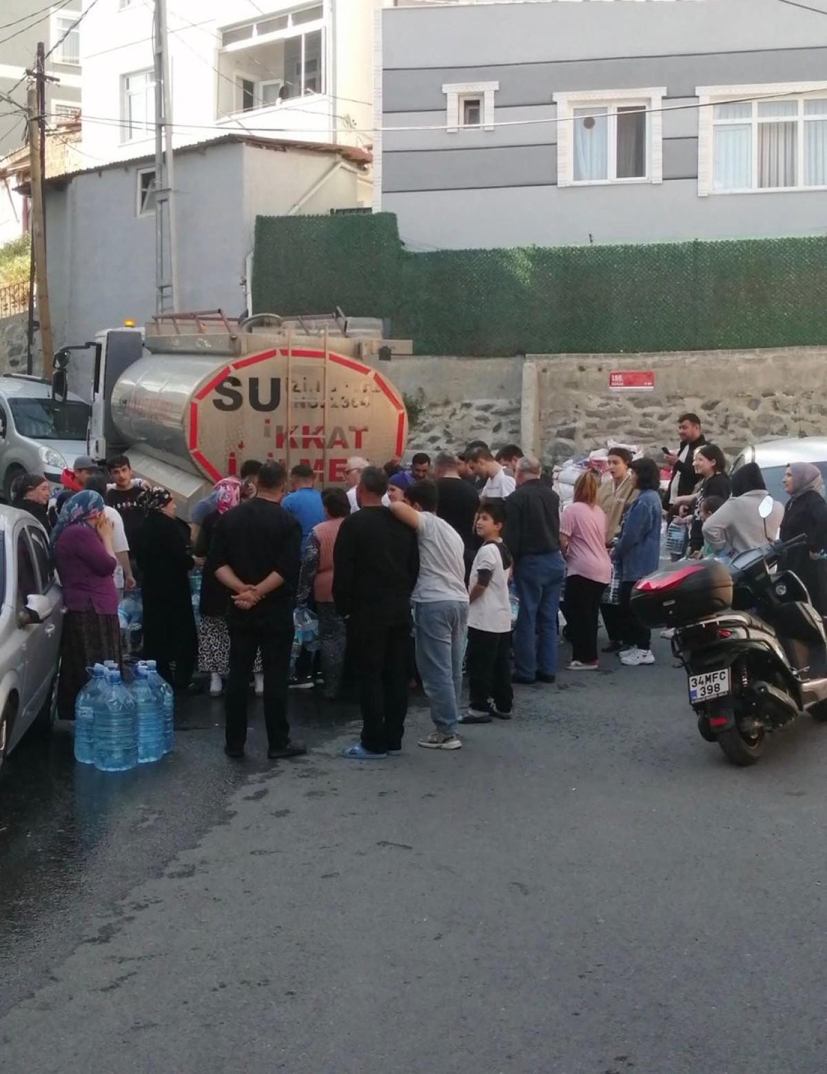 Mahalleli su alabilmek için kuyrukta beklerken görüntüler, 90'lı yılların İstanbul'unu anımsattı.