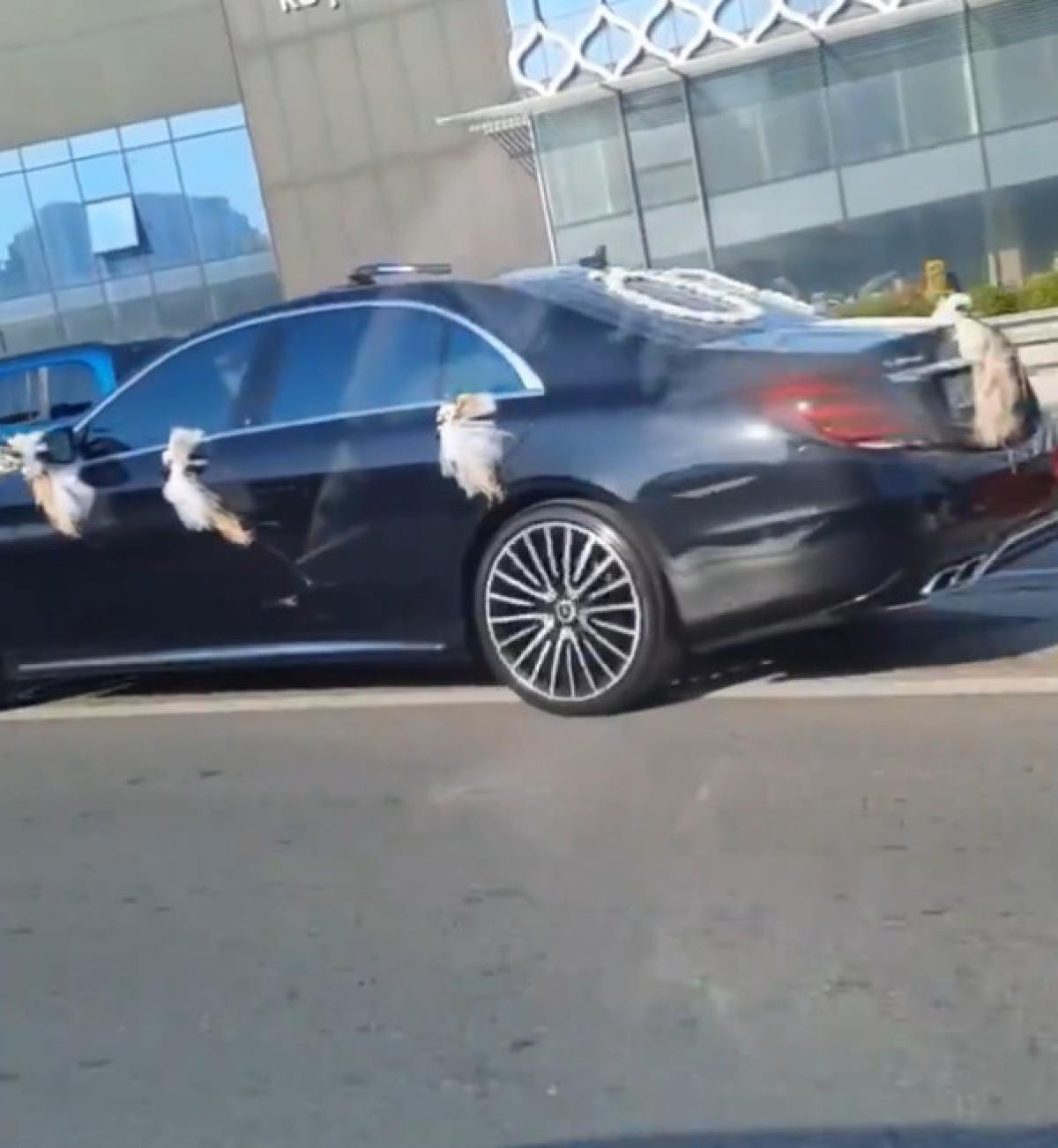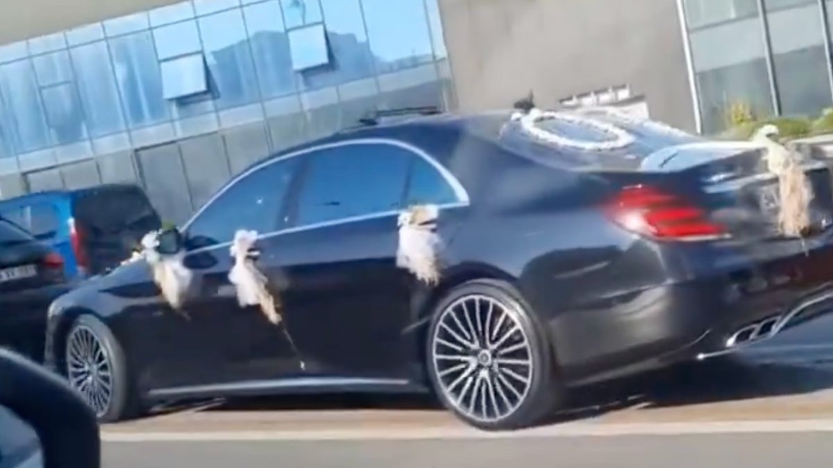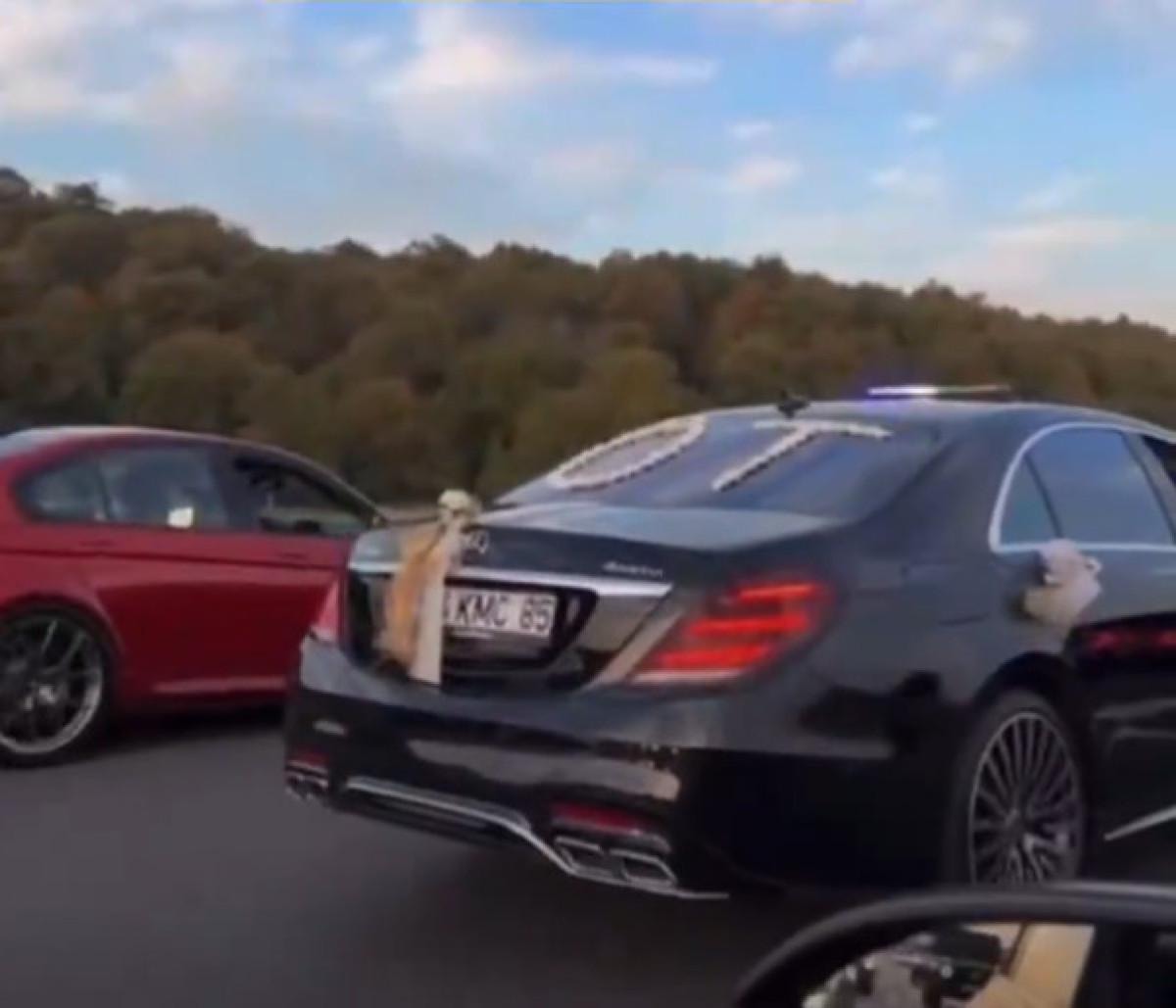 Trafiğin ortasında çakarlı gelin arabası, düğün konvoyunda görüldü.