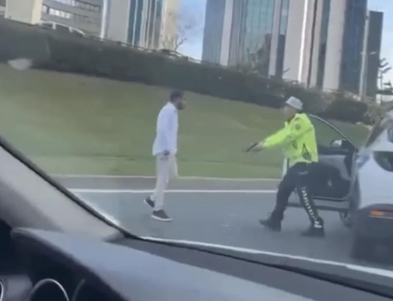 Trafik polisi, Karşıyaka'yı gözaltına almak için havaya 3 el ateş açtı. Polisin üzerine yürüyen sürücü Karşıyaka, kelepçelenerek gözaltına alındı.