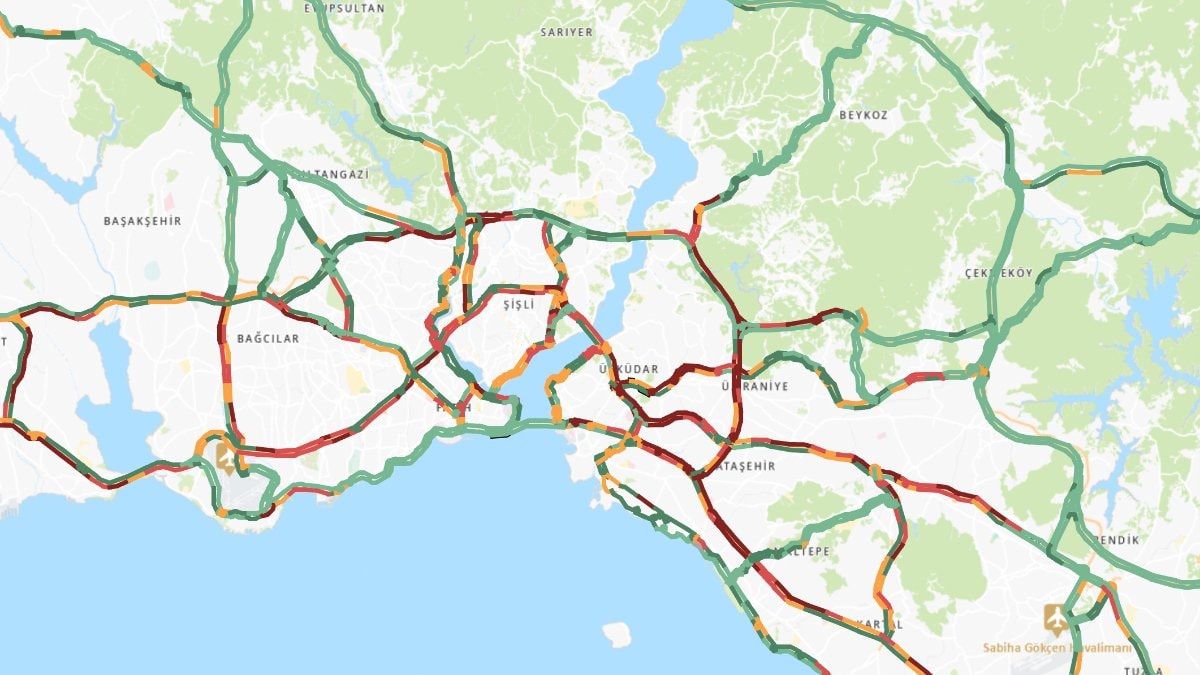 İBB'nin CepTrafik uygulaması verilerine göre, kent genelinde yüzde 78'e kadar çıkan trafik yoğunluğu, Avrupa Yakası'nda yüzde 72, Anadolu Yakası'nda ise yüzde 87 olarak ölçüldü.