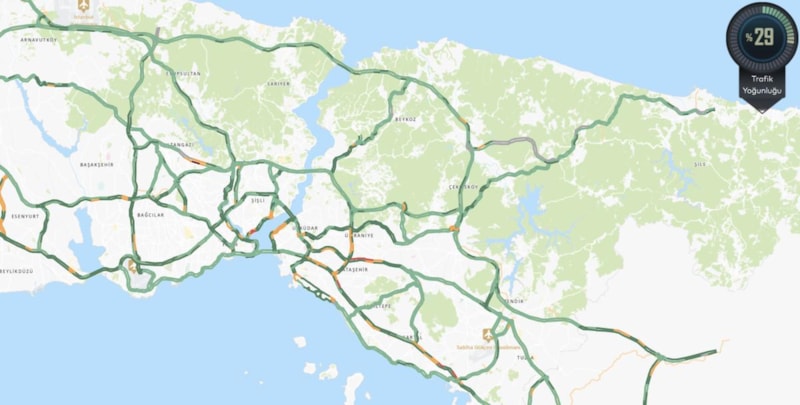 D-100 kara yolu ve TEM'de trafiğin oldukça rahat olduğu gözlenirken, sabah saatlerinde trafik yoğunluğu yüzde 29 ölçüldü.