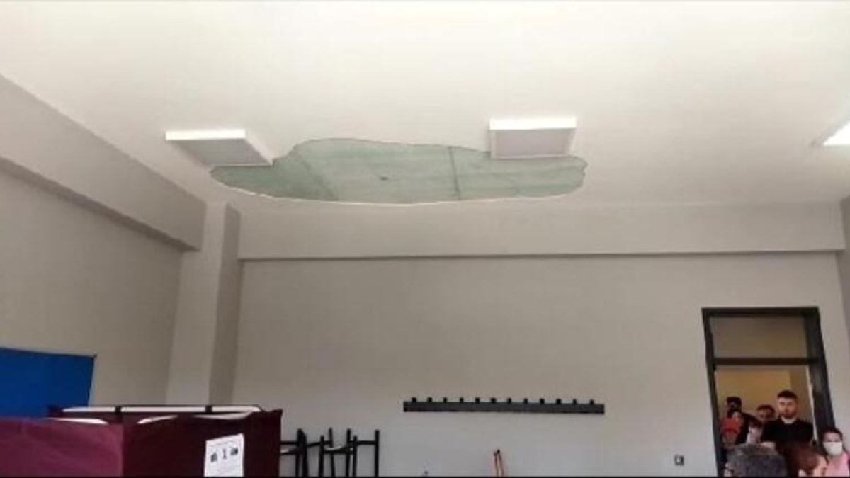 Ümraniye'de bir ortaokulda oy kullanımı sırasında sınıfın tavanından beton sıva parçaları düştü.