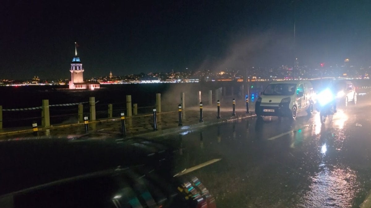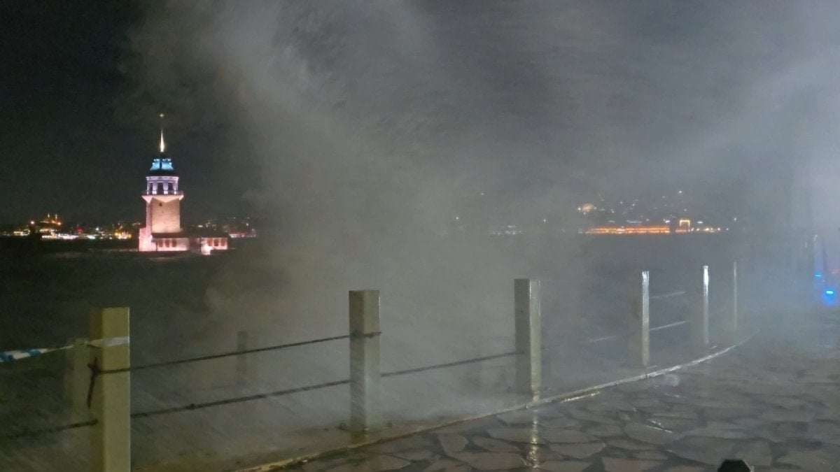 Lodosun etkisiyle sahil boyunca oluşan dalgalar dikkat çekerken Kız Kulesi'ni görmeye gelenler zor anlar yaşadı.