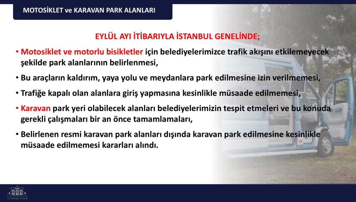 Karavanların izinsiz parkına izin verilmeyecek, resmi karavan alanları oluşturulacak.