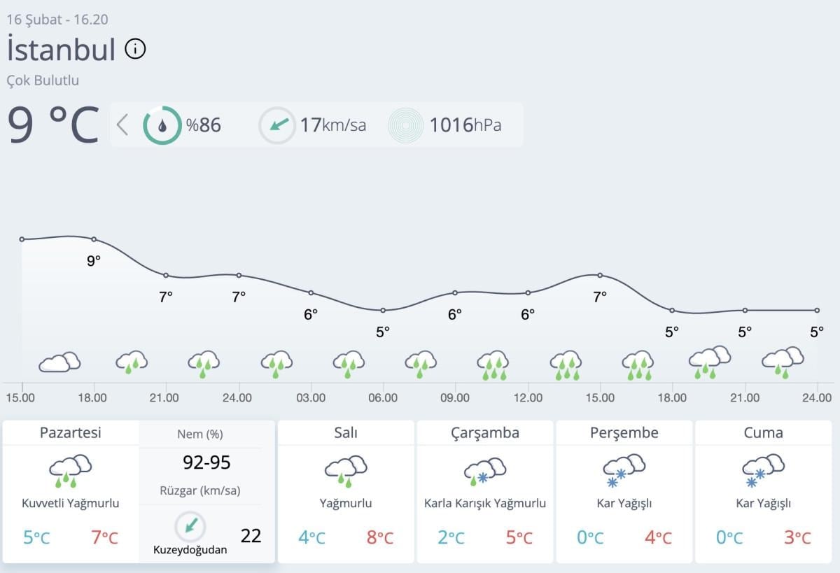 GELECEK HAFTA İSTANBUL'UN HAVA DURUMU
