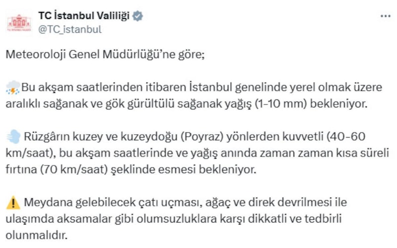 AKOM'un ardından bir uyarı da İstanbul Valiliği'nden geldi.