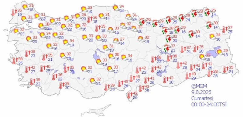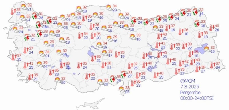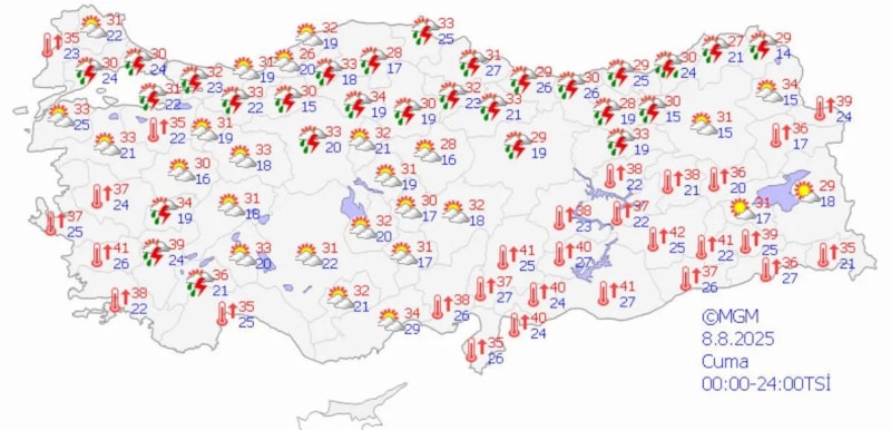 Sıcaklıkların 29-32 derece aralığında seyrettiği kentte, gök gürültülü sağanak yağışların cuma öğle saatlerine kadar sürmesi öngörülüyor.