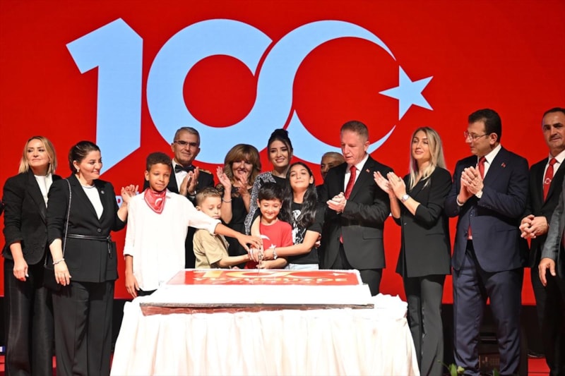 Coşkuyla süren tören, 100. yıla özel hazırlanan pastanın kesilmesiyle sona erdi.