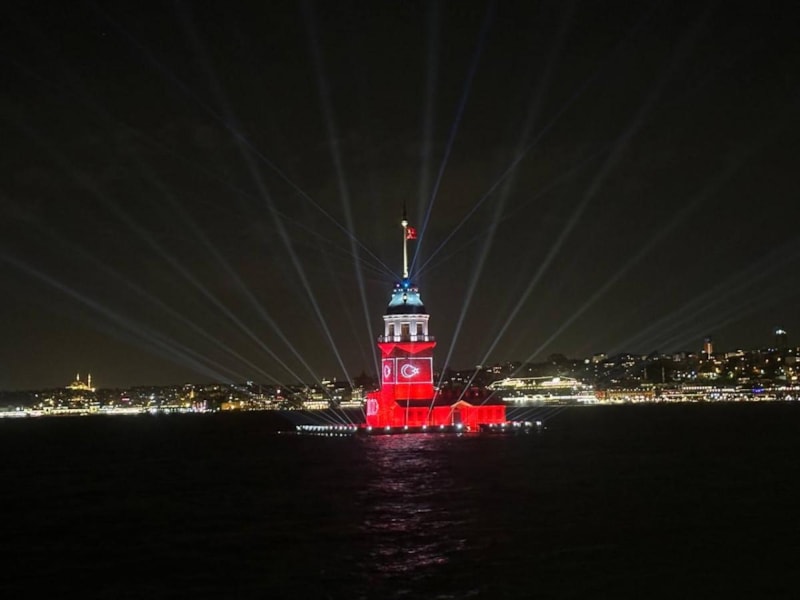 Kız Kulesi'ne Türk bayrağı yansıtıldı
