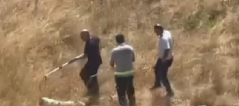 Görüntülerde belediye personellerinin ekipmanların yardımıyla başıboş köpekleri kepçeye yükledikleri görüldü.
