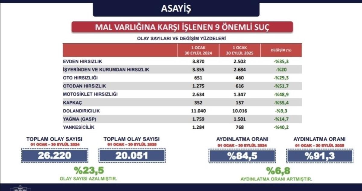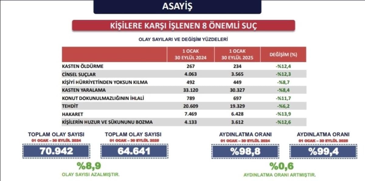 "KİŞİLERE KARŞI İŞLENEN SUÇLARIN YÜZDE 9 AZALDIĞINI GÖRÜYORUZ"