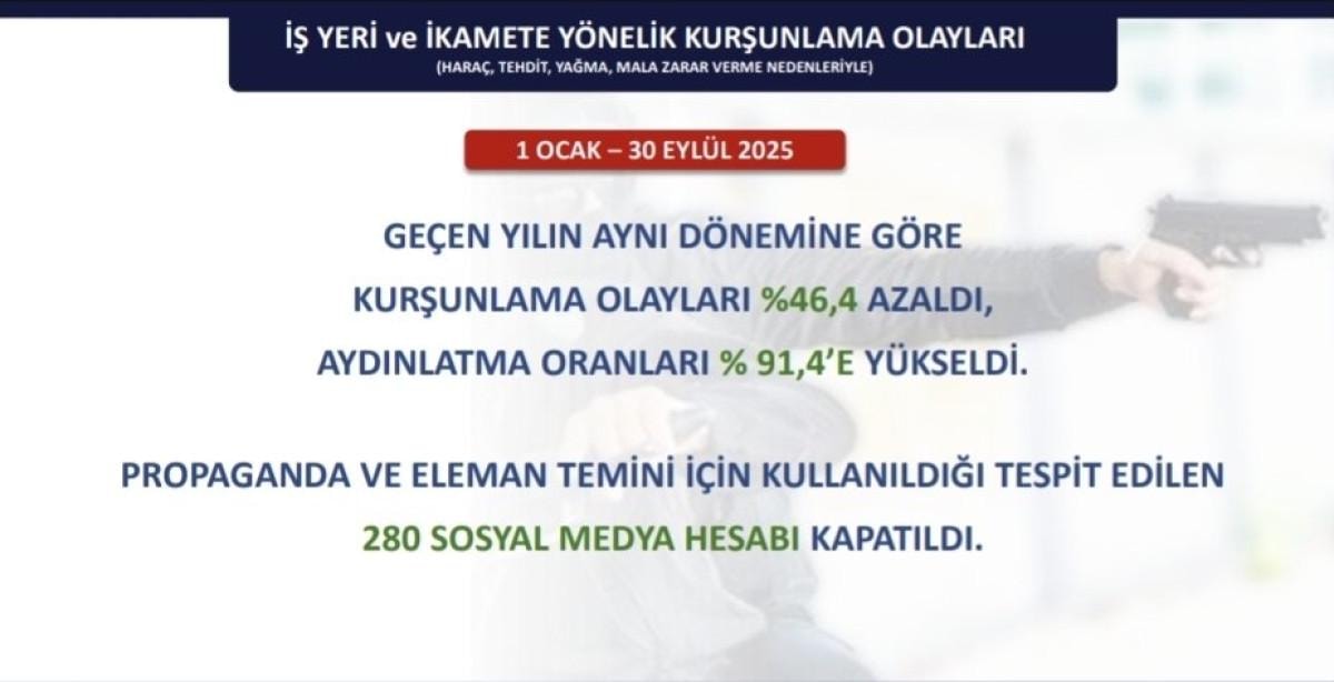 "KURŞUNLAMA OLAYLARI GEÇEN YILIN AYNI DÖNEMİNE GÖRE YÜZDE 46 AZALDI"