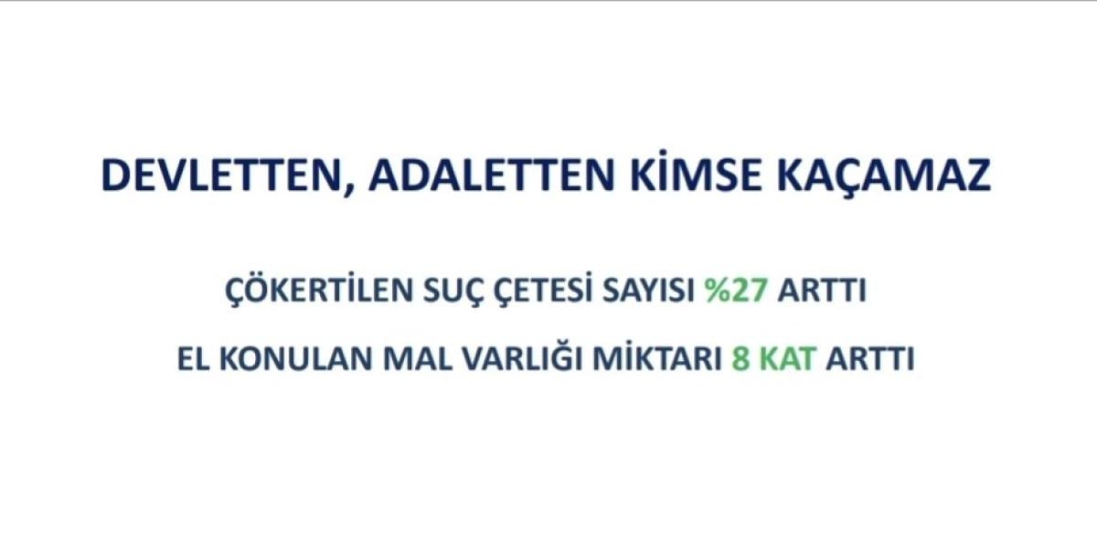 Huzur ve güven ortamının devamı için amansız bir mücadele verdiğimiz bir diğer önemli başlığımız organize suç örgütleri. Bu kapsamda bu yılın ilk 9 ayında yürüttüğümüz çalışmalarda operasyon sayımız, geçen yılın aynı dönemine göre yüzde 12, çökertilen suç çetesi sayısı yüzde 27 arttı. Bin 341 şahıs yakalanarak adalete teslim edildi. 296 milyar Türk Lirası değerinde mal varlığına el konuldu. Şehir eşkıyalarına karşı verdiğimiz bu kararlı mücadele sayesinde kurşunlama olayları geçen yılın aynı dönemine göre yüzde 46 azaldı. Mesajımız net. Vatandaşlarımız müsterih olsun. Hiçbir suç yapısı, devletten büyük değildir. Hiçbir şehir eşkıyası kanundan kaçamayacaktır.