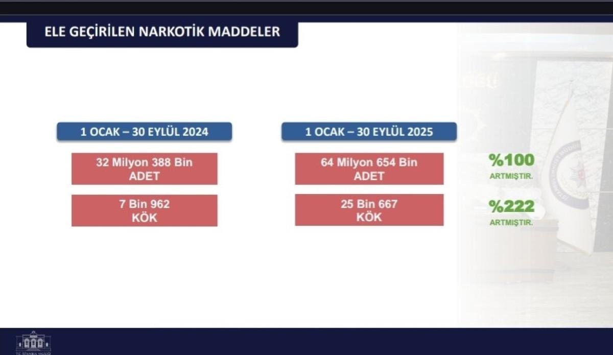 "UYUŞTURUCU OPERASYONLARIMIZ GEÇEN SENENİN AYNI DÖNEMİNE GÖRE YÜZDE 15 ARTTI"