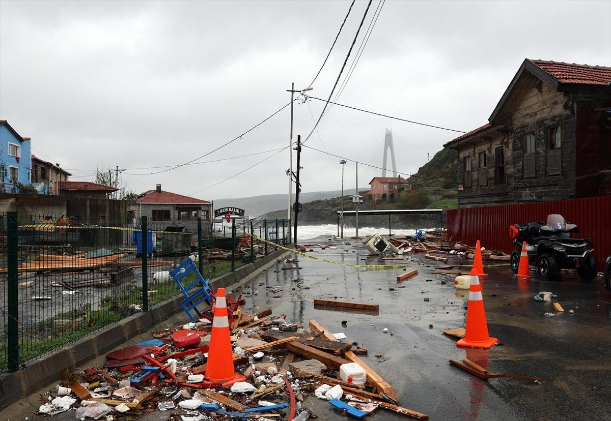 Sarıyer'de Garipçe ve Rumelifeneri mahallelerindeki bazı restoran ve işletmelerde yağış ve fırtına nedeniyle hasar oluştu, bazı ağaçlar yola devrilirken bazıları da yan yattı.