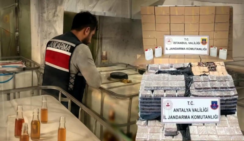 İstanbul ve Antalya merkezli 81 ilde "sahte/kaçak alkol imalatçılarına" yönelik Jandarmamız tarafından son 2 haftadır düzenlenen operasyonlarımızda; 33 bin 554 litre sahte/kaçak alkol ile 29 bin 63 litre etil alkol ele geçirildi.