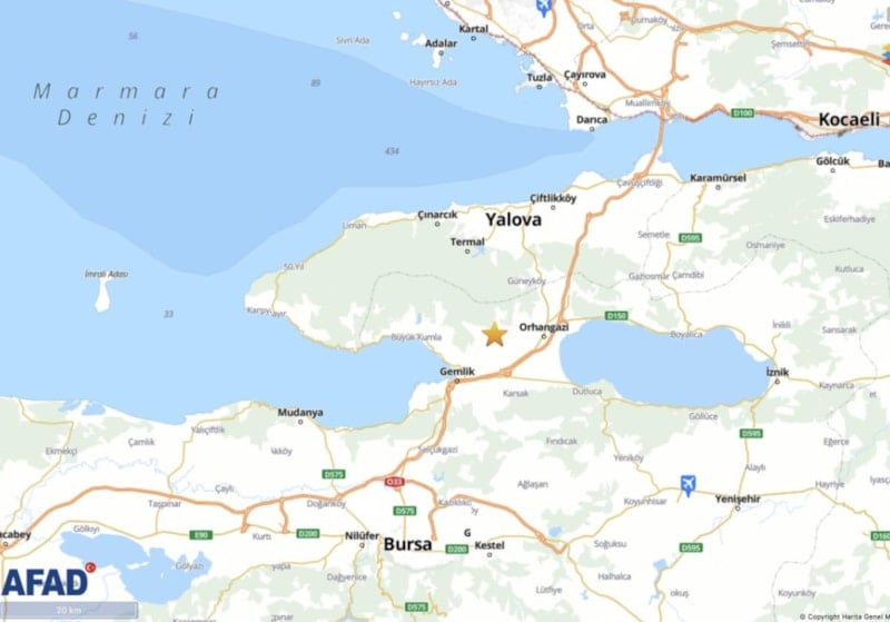 Depremin merkez üssü Bursa Gemlik olarak açıklandı.