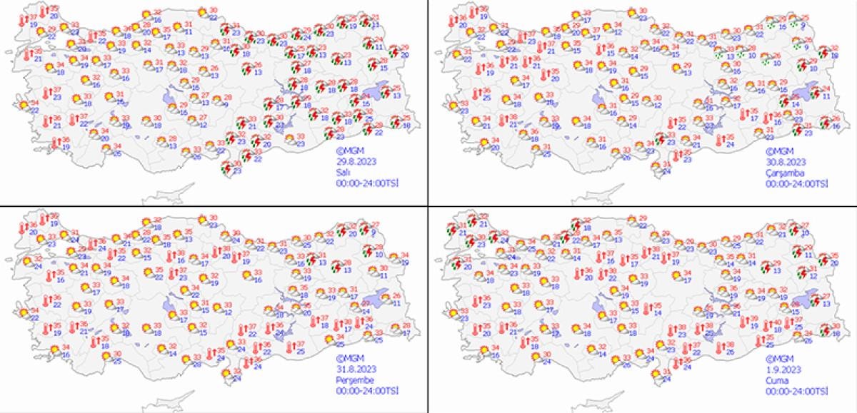 Sıcaklıkların 1 Eylül Cuma günü Trakya kesiminde, 2 Eylül Cumartesi günü ise bölge genelinde mevsim normallerine düşmesi öngörülüyor.