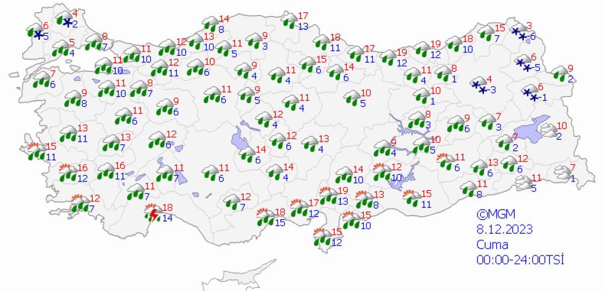 Yağışların zamanla 1000 metre üzeri yüksek kesimlerde kar yağışı şeklinde görülmesi bekleniyor.