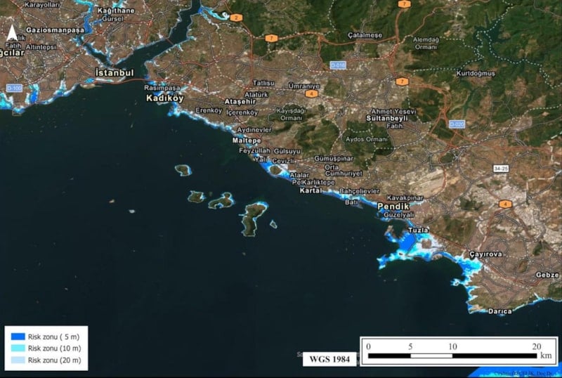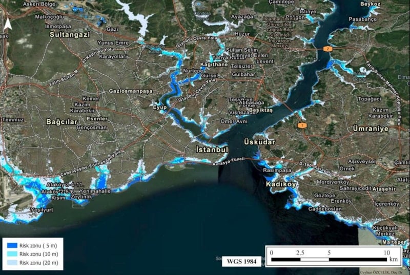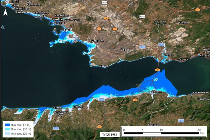 Özçelik, "Haritalar; tsunami dalga yüksekliği, heyelan, gelgit, karasal taşkınlar gibi birçok faktörü içeren geniş çaplı bir risk değerlendirmesi sunuyor. Tsunami etkileri, özellikle düşük eğimli kıyı alanlarında daha belirgin şekilde hissedilecektir. Buna karşılık Marmara'nın iç koylarında, Haliç'te ve Boğaz çevresindeki etkilerin daha sınırlı olacağını öngörüyoruz." dedi.