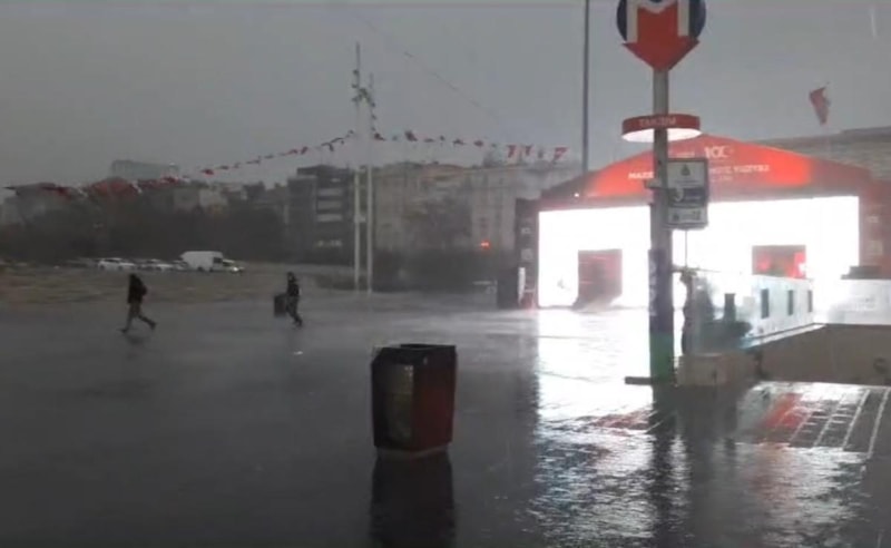 Taksim’de önce gökyüzü karardı sağanak yağış başladı.