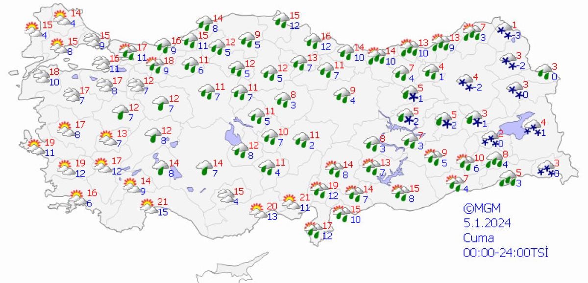 Sıcaklıkların 5 ila 8 derece düşüp kar değerlerine ineceğine dikkat çekilen açıklamada, 9 Ocak Salı günü kentin yüksek kesimlerinde, 10 Ocak Çarşamba günü ise kent genelinde kar yağışının beklendiği vurgulandı.