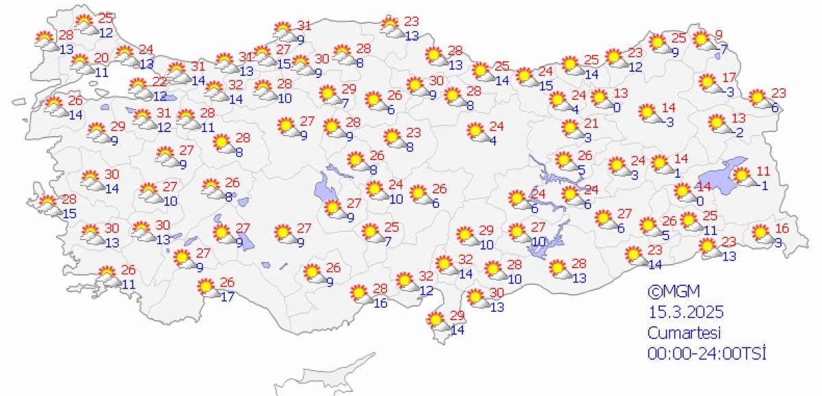 16 MART PAZAR GÜNÜ HAVA DURUMU