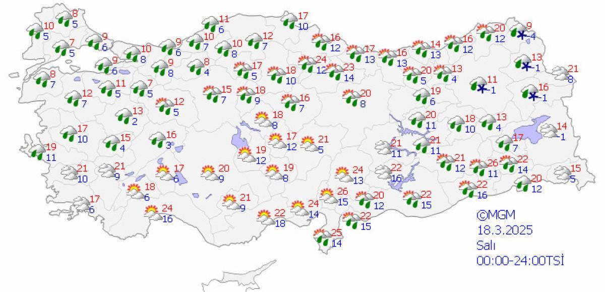 17 MART PAZARTESİ GÜNÜ HAVA DURUMU