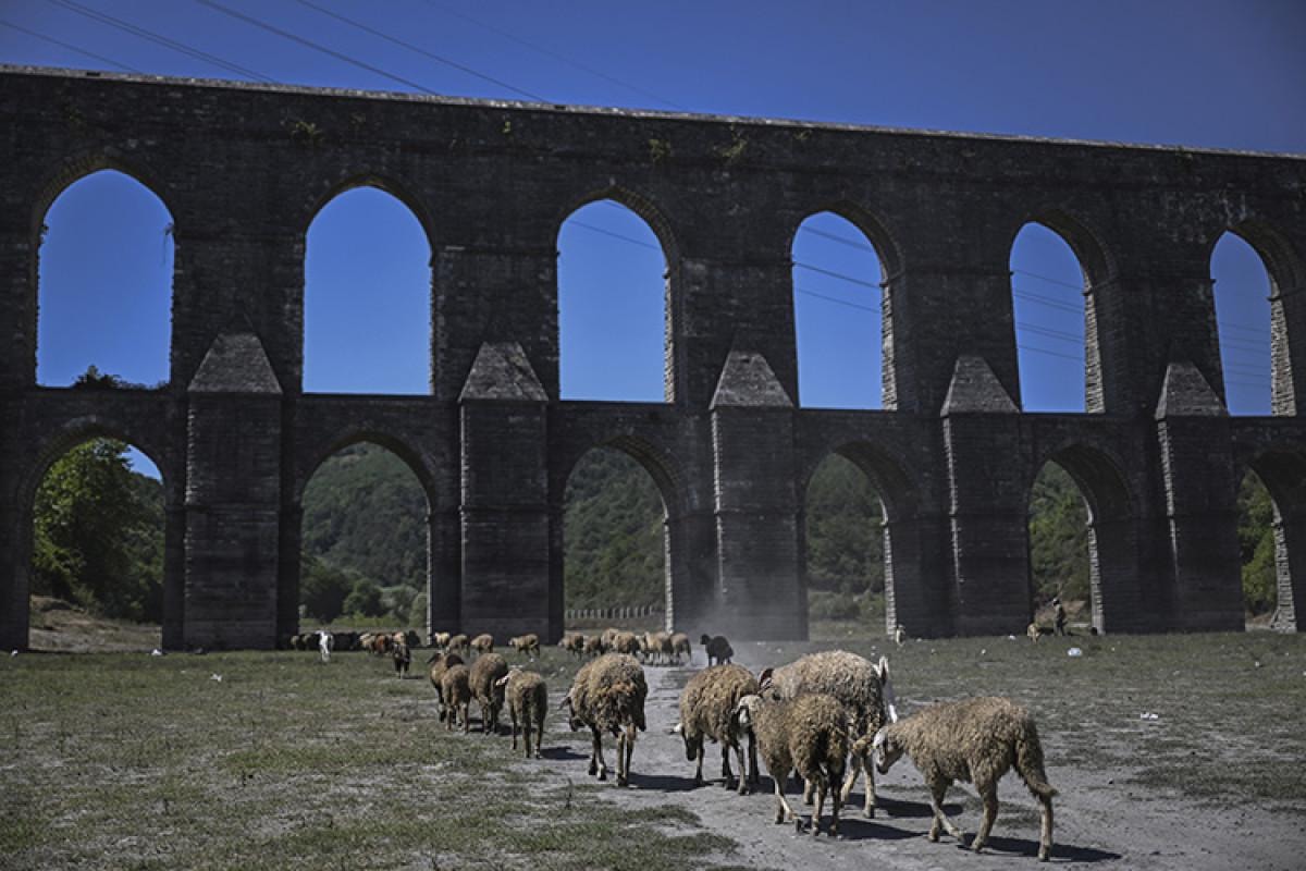 Dronla görüntülenen barajın üzerindeki Güzelce Kemeri, suların çekilmesiyle tamamen ortaya çıktı. Kemerin çevresi kururken toprağın da çatlamaya başladığı görüldü.