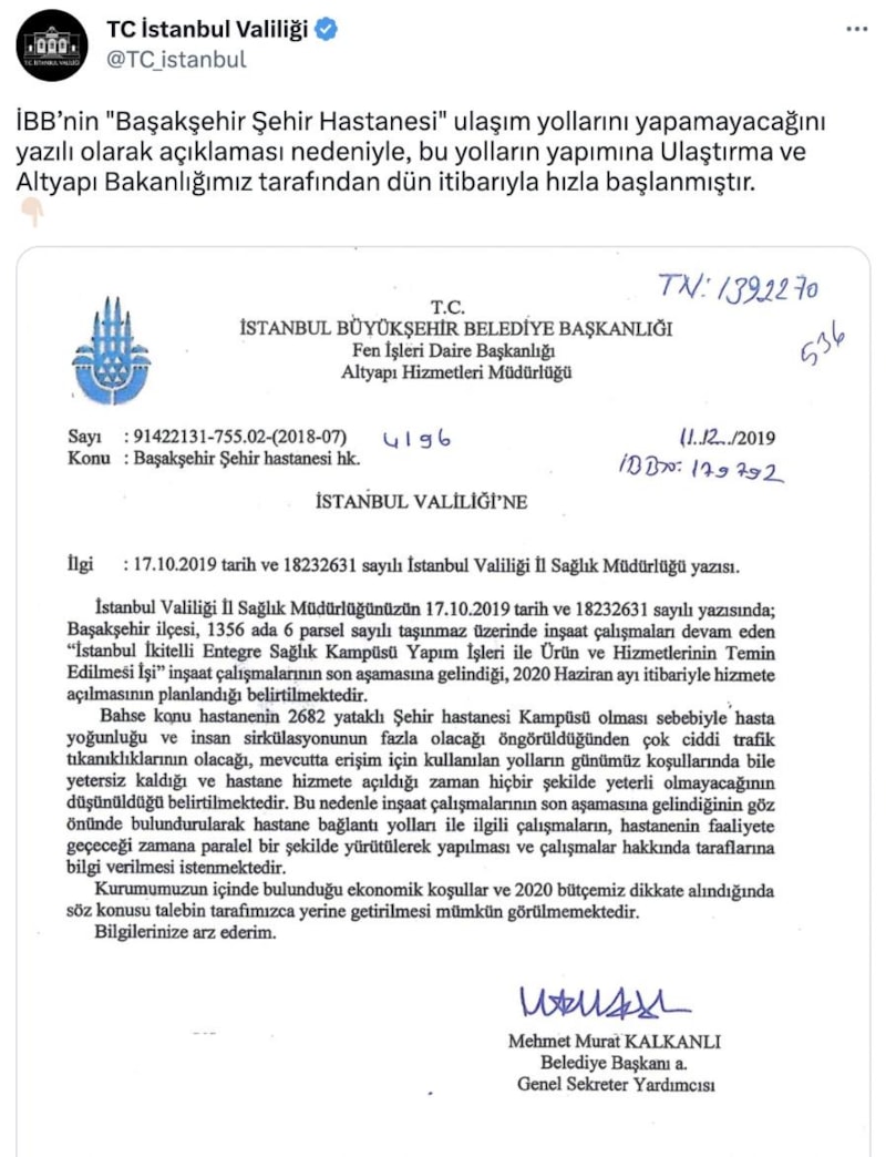 Başakşehir-Çam ve Sakura Şehir Hastanesi ile Kayaşehir metro hattımızın hayırlı olmasını diliyorum.