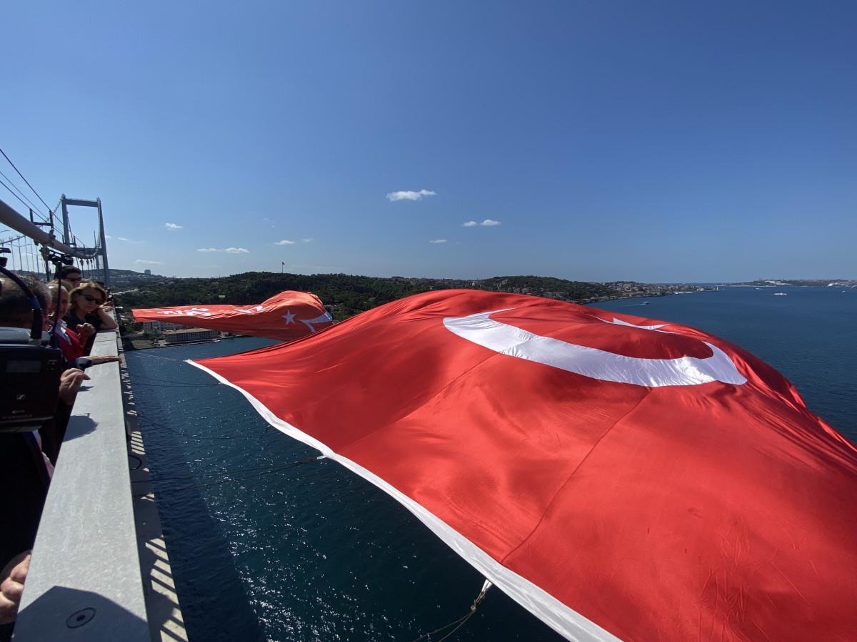 Bayrakların asılacağı noktaya gelindiğinde Türk bayrağı, 15 Temmuz Derneği bayrağı ve üzerinde 'Zaferin Adı 15 Temmuz' yazılı bayraklar 15 Temmuz Şehitler Köprüsü'ne asıldı.