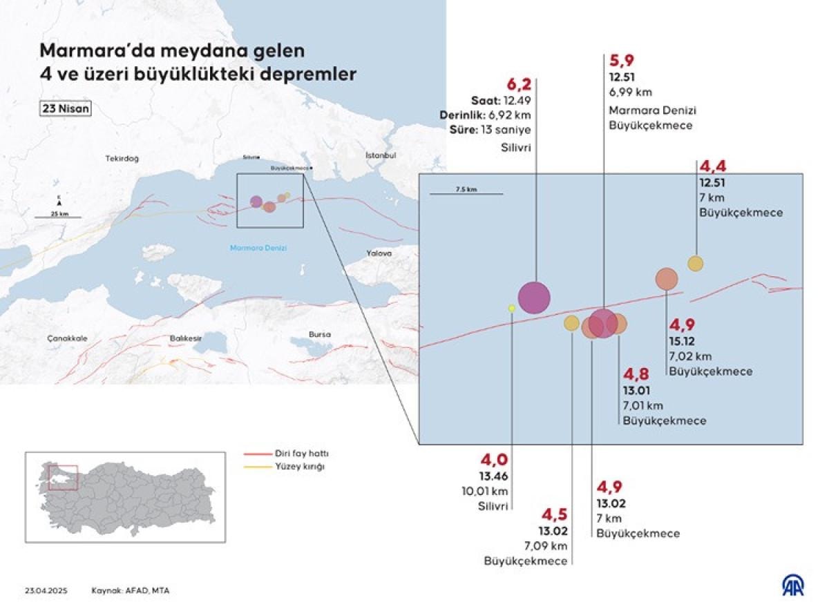 İstanbul, saat 12.49'da Marmara Denizi Silivri açıklarında meydana gelen 6.2 büyüklüğündeki depremle sarsıldı.