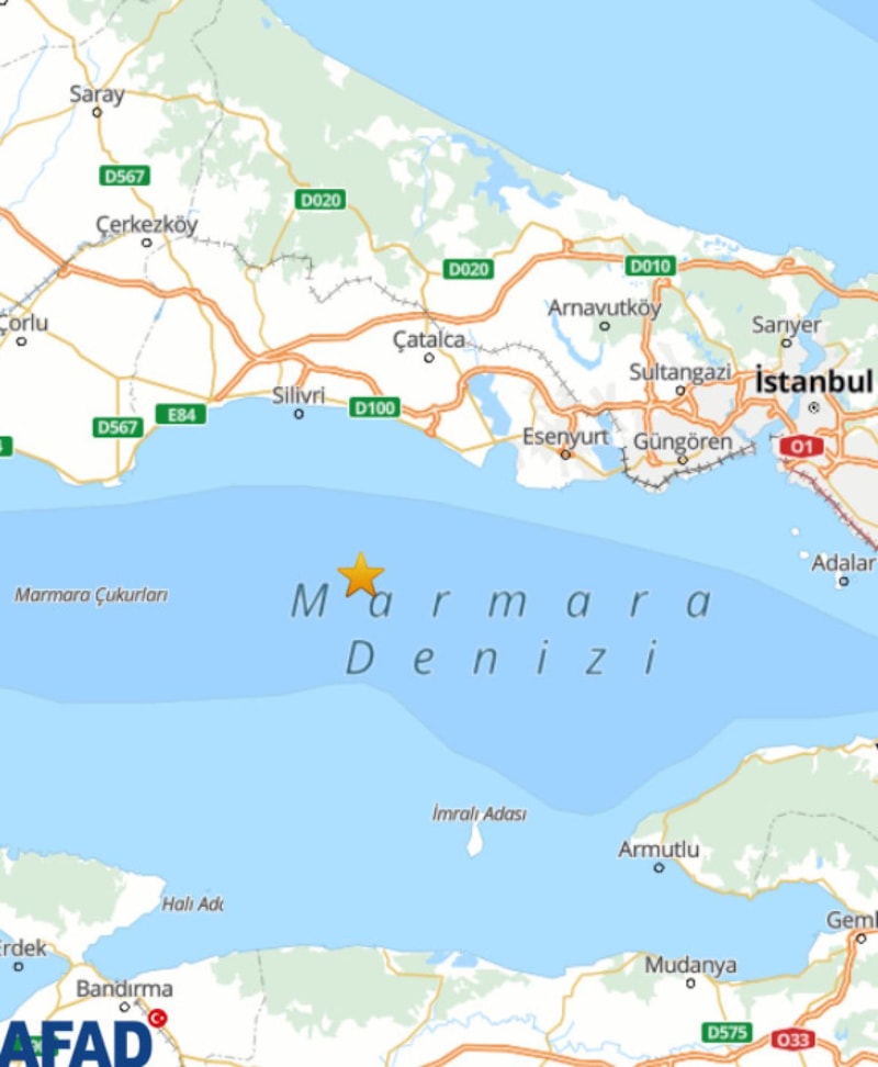 Afet ve Acil Durum Yönetimi Başkanlığı'nın (AFAD) verilerine göre merkez üssü Marmara Denizi Büyükçekmece'de gerçekleşen deprem, 9.36 kilometre derinlikte kaydedildi..