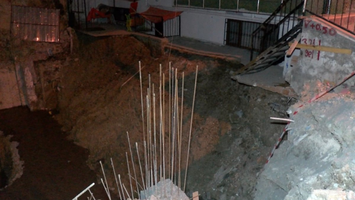 Henüz bilinmeyen bir sebeple, binanın zemin katındaki anaokulunun bahçe olarak kullandığı kısımdan, inşaat alanına doğru toprak kayması meydana geldi.