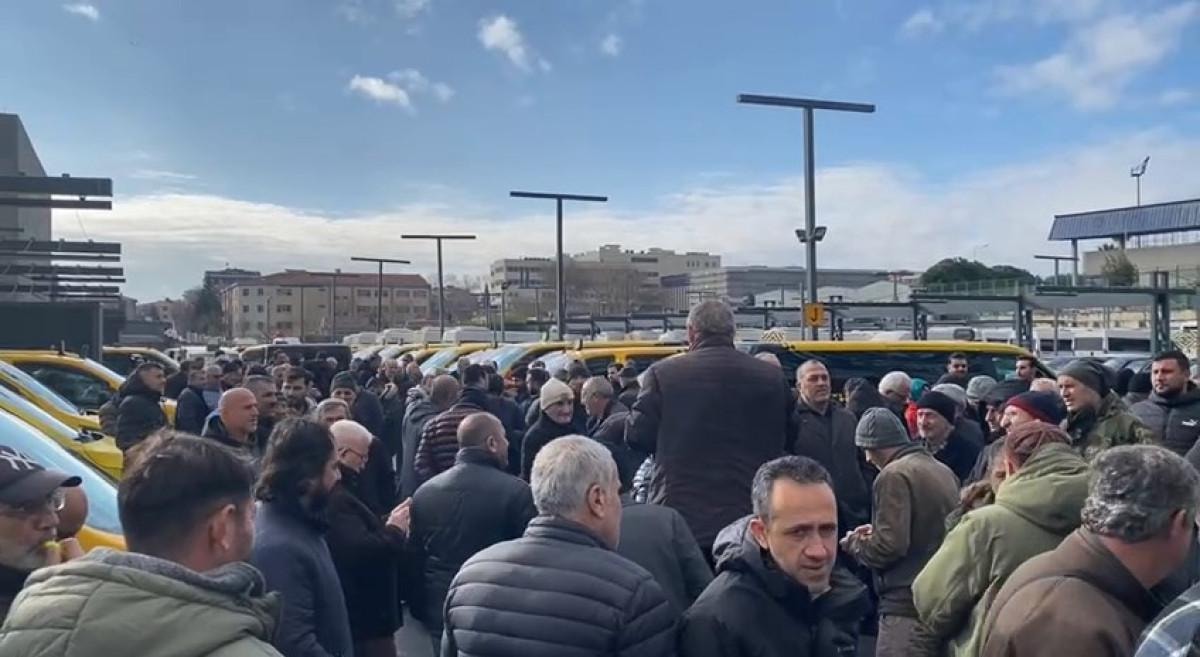8+1 statüsünde kalan 717 taksici, bugün İBB Bakırköy ek binasının önünde eylem düzenledi.