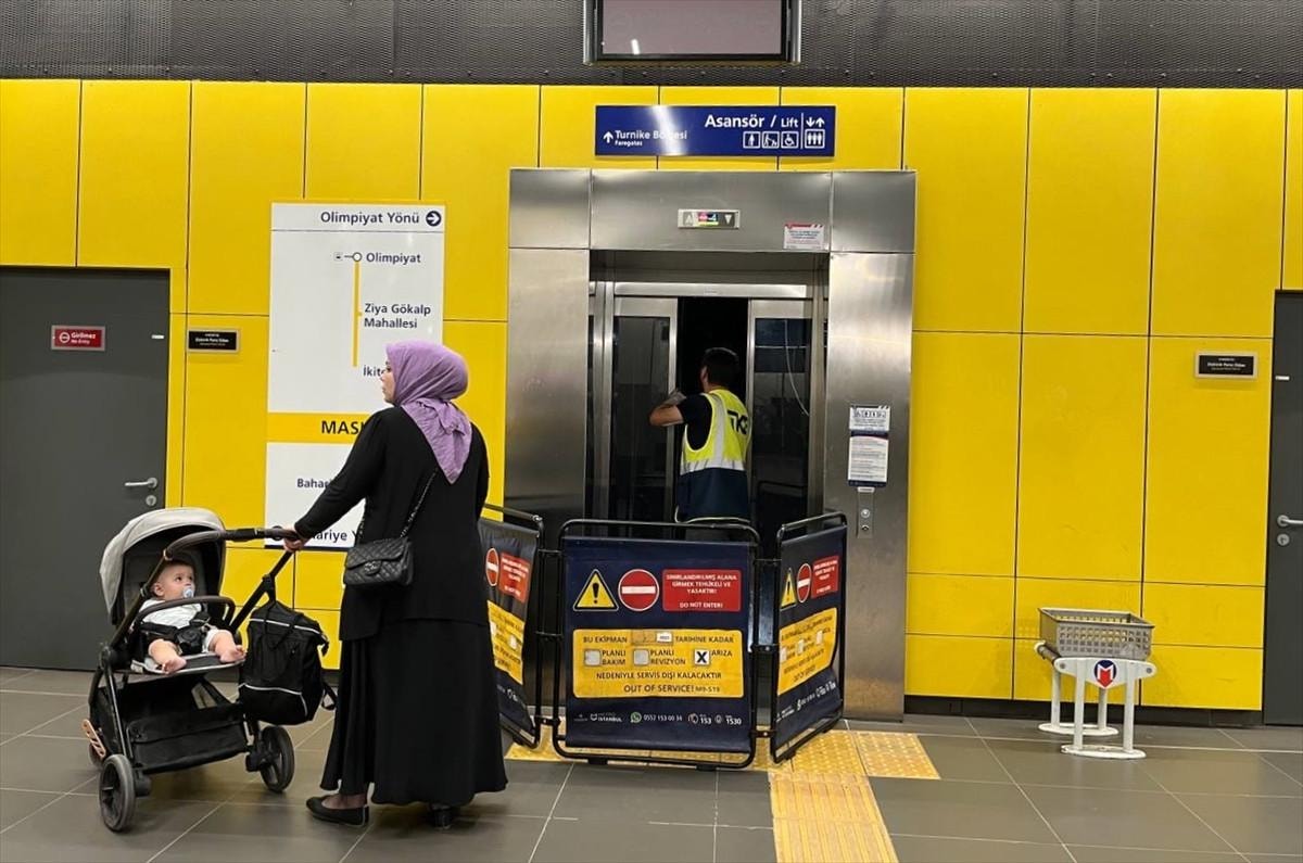 Ziya Gökalp Mahallesi durağı turnike-cadde arasında 1 yürüyen merdiven ve Masko durağında peron-turnike arasındaki yine 1 asansörün hizmet dışı olduğu ancak ekiplerin çalıştığı görüldü.
