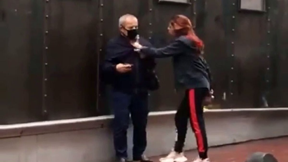 Genç kız son olarak sokaktan geçmekte olan babası yaşında bir adam ile tartışmaya başladı. Adamın yakasından tutan ve bırakmayan kız, daha sonra hakaretler ve küfür etmeye başladı. Bir süre adamı darp eden genç kız, bu kez kendisinden kurtulmak isteyen adama tekme ve tokat ile saldırdı. Bununla da yetinmeyerek kendisinden kurtulan adamın kafasına elinde bulunan alkol şişesi ile vurdu.