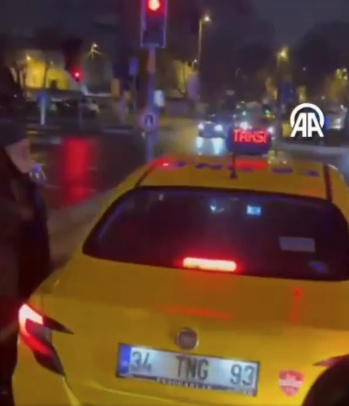 İstanbul'un Fatih ilçesinde 34 TNG 93 plakalı taksi, kırmızı ışıkta beklediği sırada arkasından siren çalarak gelen ambulansa yol vermeyerek geçişini engelledi.